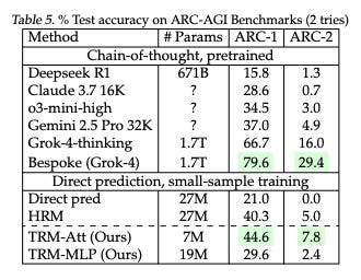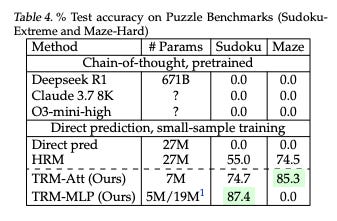 For example, look at this table from this recent paper entitled “Recursive Reasoning with Tiny Networks”: