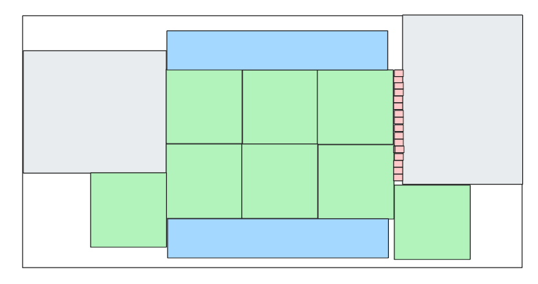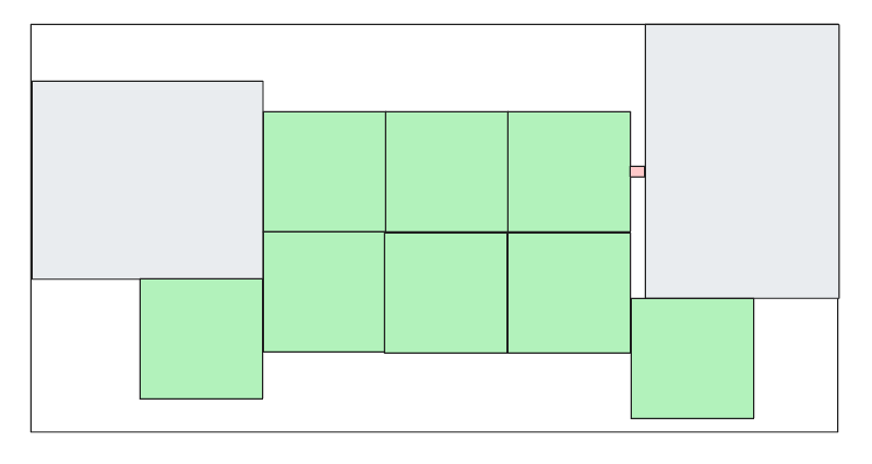 we can try to move the green and red blocks around to see if there are better ways to cover the gaps (for example, we could move the red blocks all a little below to cover that tiny gap at the bottom of the row)